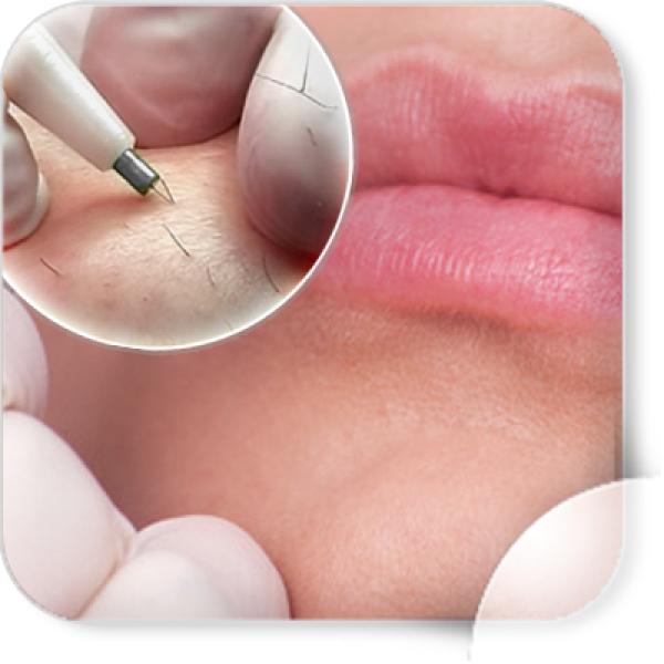 Eine Enthaarungstechnik, bei der eine hauchdünne, sterile Sonde in den Haarkanal eingeführt und dann kurz Strom appliziert wird. Die Haarwurzel wird zerstört.
